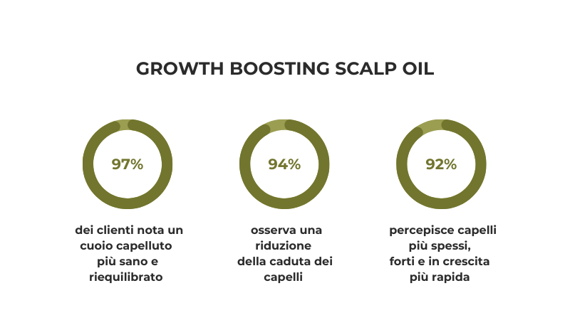 Il GROWTH BOOSTING SCALP OIL è un trattamento naturale con 11 oli essenziali e 8 vitamine per nutrire, purificare e rinforzare il cuoio capelluto. Basta applicare alcune gocce, massaggiare per 5 minuti, lasciarlo agire per 1-2 ore e poi risciacquare. Perfetto per promuovere la crescita dei capelli e mantenerli sani dalla radice!